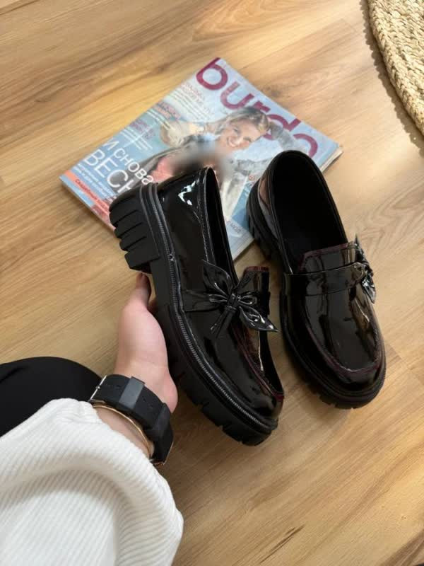 کالج زنانه پاپیونی با دو جنس ورنی و چرم