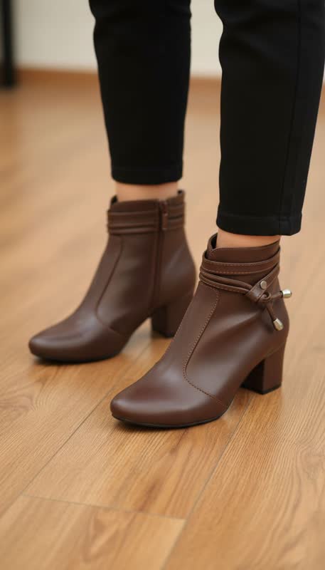 نیم بوت زنانه چرمی پاشنه 5 سانت