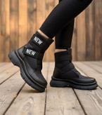نیمبوت زنانه مدل NEW TREND 2425 ترکیبی بینقص از طراحی مدرن شهری و فناوری روز در ساخت کفش زمستانی است. این محصول با ظاهر اسپرت و مینیمال خود در دو رنگ پرطرفدار مشکی مات و کرم صدفی عرضه شده و انتخابی ممتاز برای بانوانی است که راحتی و استایل را همزمان طلب میکنند.