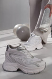 زیره کفش بر پایه PU-AntiShock با ساختار چندلایه Multi-Density توسعه یافته و امکان جذب ارتعاشات لحظه برخورد پا با سطح را فراهم میکند؛ این ویژگی فشار وارده بر پاشنه، زانو و مچ را کاهش داده و تجربه پیادهروی طولانیمدت را بدون خستگی فراهم میکند. طراحی Chunky Stabilizer در بخش میانی و پاشنه سبب توزیع یکنواخت وزن و جلوگیری از پیچخوردگی احتمالی پا میشود.