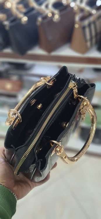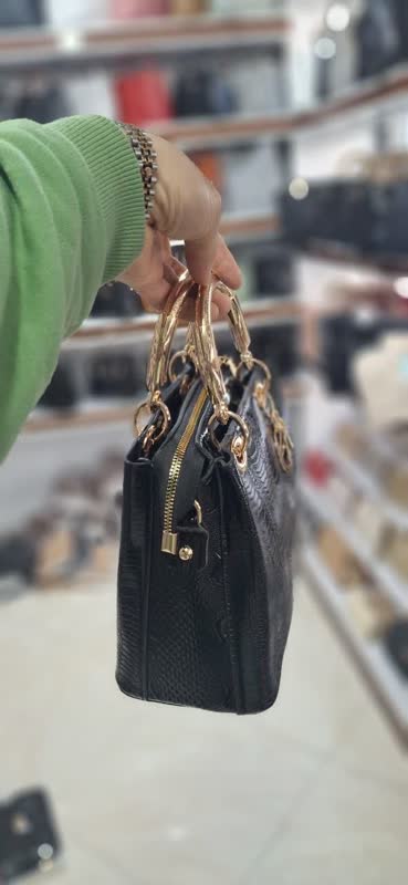 دستههای طلایی براق همراه با آویزهای فلزی جذاب، جلوهای لاکچری و خیرهکننده به کیف اضافه کرده و آن را به انتخابی ایدهآل برای خانمهایی تبدیل میکند که به زیبایی و ظرافت اهمیت میدهند.