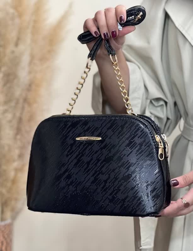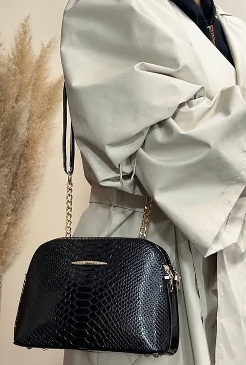 این کیف با رنگ مشکی کلاسیک و بافت برجسته طرح پوست ماری، جلوهای لوکس و چشمگیر به استایل شما میبخشد.